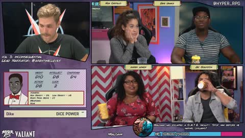 "My boy is killing it in the background..." Vanquished: Valiant Comics RPG